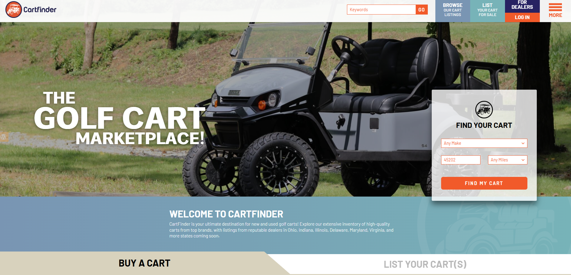 CartFinder is the ultimate platform for buying and selling new and used golf carts. Whether you're a buyer looking for a reliable cart or a seller aiming to reach a broad audience, CartFinder connects you with reputable dealers and private sellers. Enjoy a seamless experience with verified listings, detailed specifications, and secure transactions. Find the perfect golf cart for your needs quickly and effortlessly.