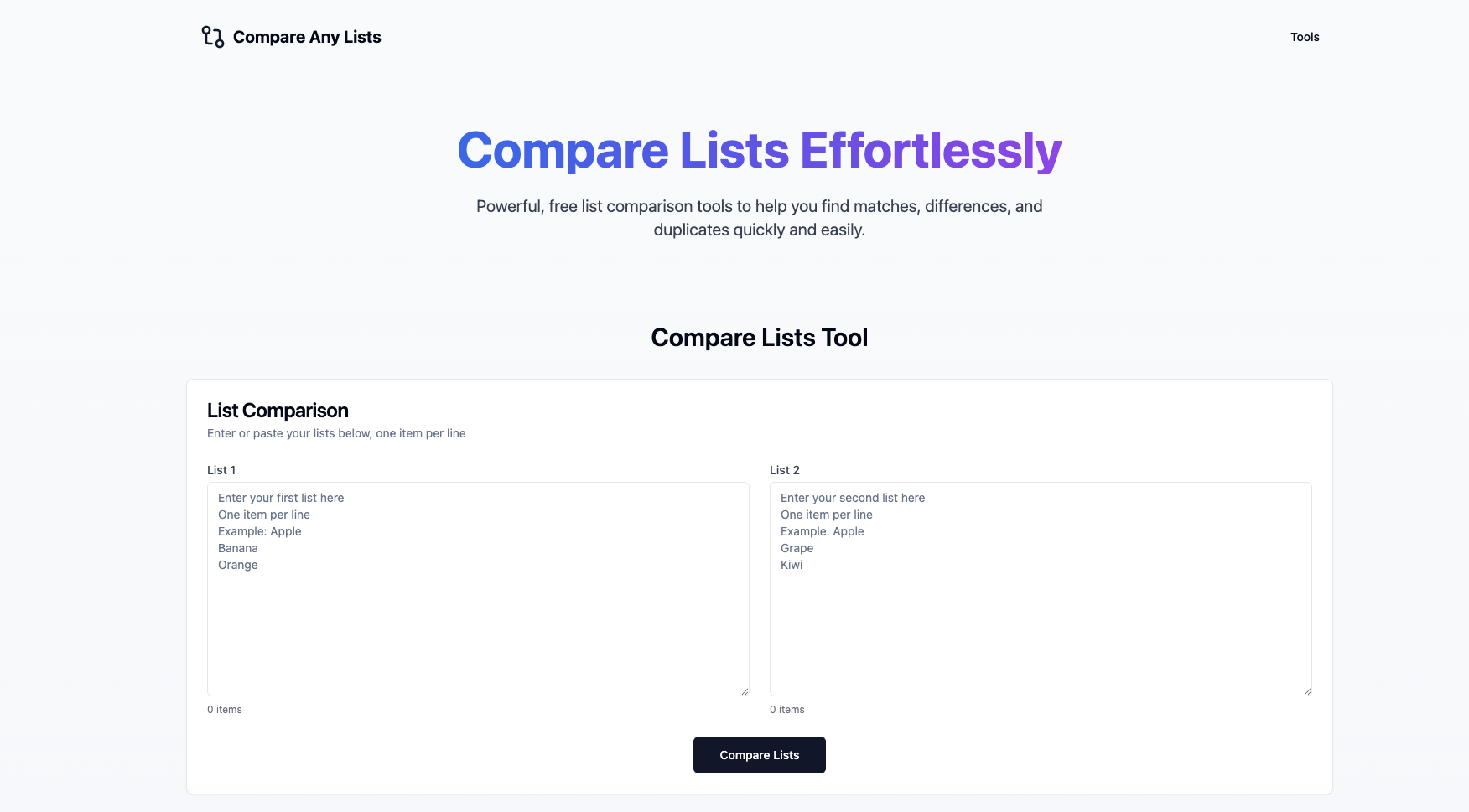 Powerful, free list comparison tools to help you find matches, differences, and duplicates quickly and easily.