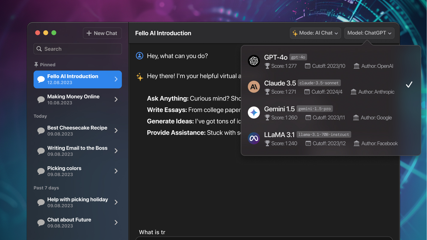 - Supports ChatGPT, GPT-4o, Claude 3.5, Gemini 1.5, LLaMA 3.1