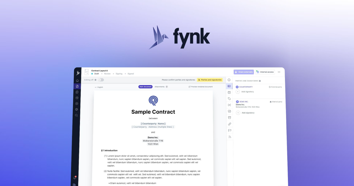 At Fynk, our team is the heartbeat behind the innovation. We are a close-knit group of creators, thinkers, and problem-solvers who are passionate about transforming the contract management process. Together, we've crafted a tool that not only makes contracts more manageable and professional but also empowers businesses to turn what is often a cumbersome necessity into a strategic asset. Our diverse backgrounds and shared dedication to excellence mean that we are not just offering a service — we are providing a seamless experience that sets our customers up for success. With roots in Vienna and a mission that reaches globally, we are on a journey to redefine contract management, one seamless signature at a time.