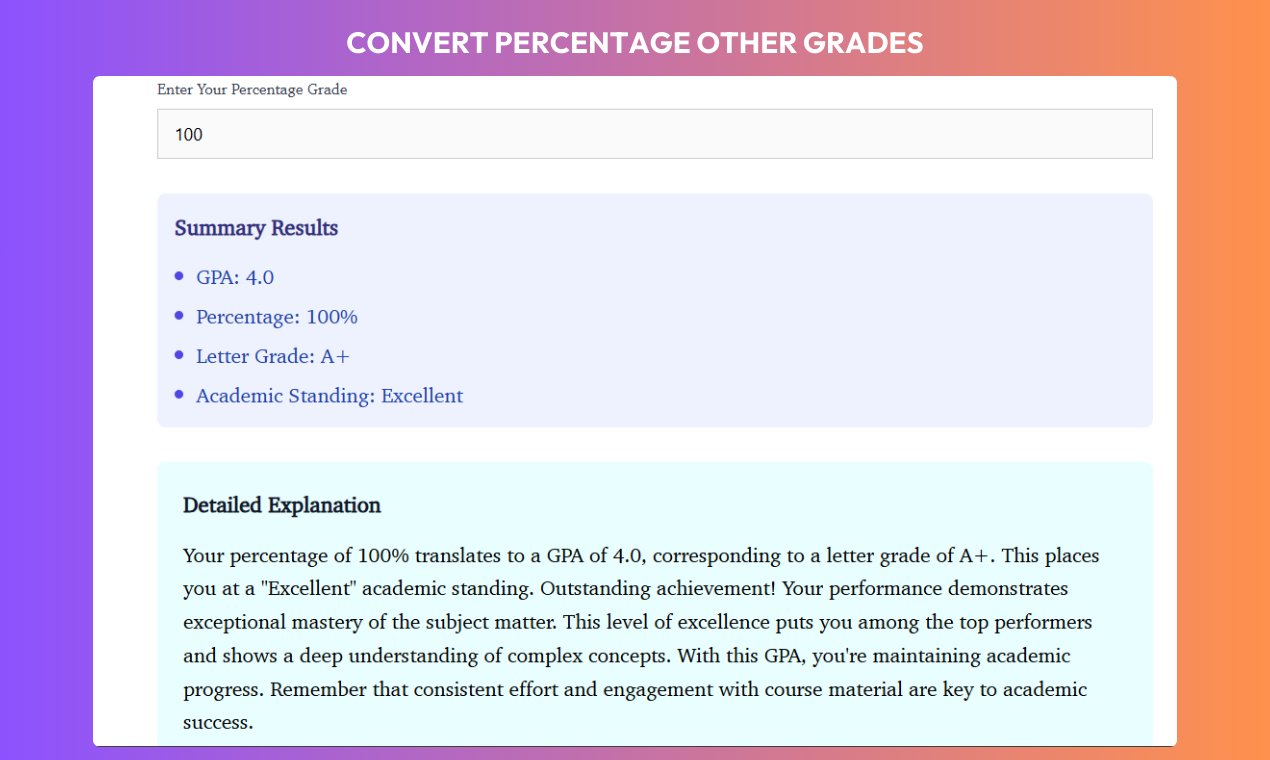 Tired of manually calculating your GPA? I was too! That's why I built GradeToGPA.com. It's a free and easy-to-use tool that instantly converts your grades to a GPA. No more spreadsheets or complicated formulas! Check it out and let us know if you have any questions. We're eager to hear your thoughts!