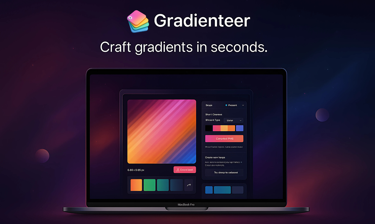 Gradienteer is a simple yet powerful tool for anyone building a brand, website, or product. It helps you create beautiful gradients and color palettes, fine-tune them with full control, and export in the formats you need. Whether you're designing a landing page or defining your brand's visual identity, Gradienteer gives you the precision and speed to get it right without needing a design background.