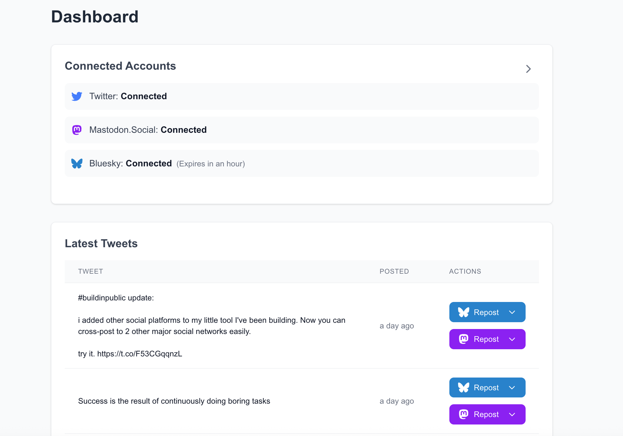 🔁 Auto Reposting – Set it and forget it. Repost on a schedule.
